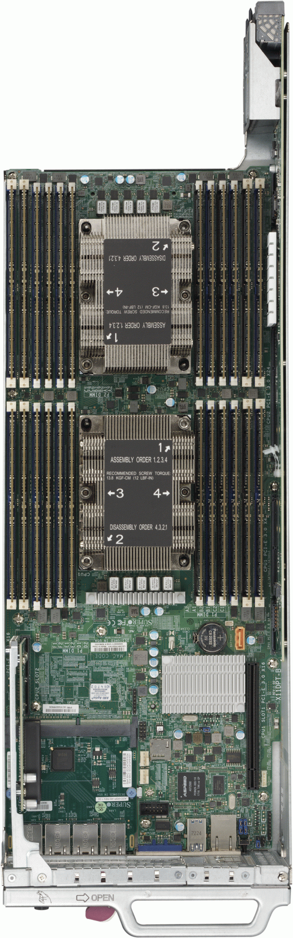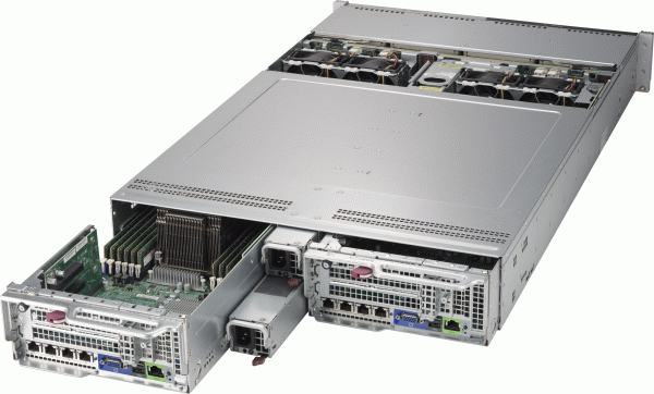 • Two hot-pluggable systems (nodes) in a 2U form factor. Each node supports the following: