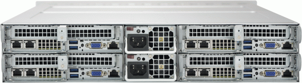 • Four hot-pluggable systems (nodes) in a 2U form factor. Each node supports the following: