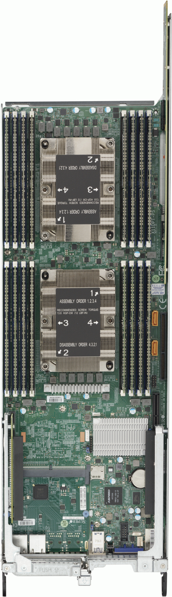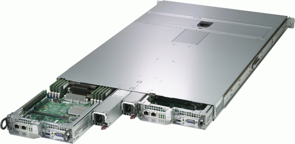 • Two hot-pluggable systems (nodes) in a 1U form factor. Each node supports the following: