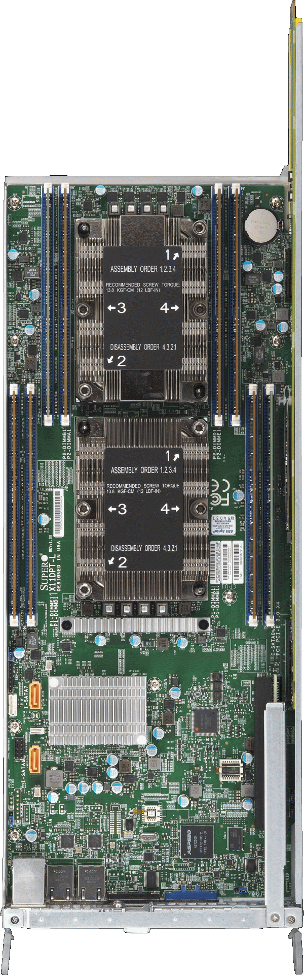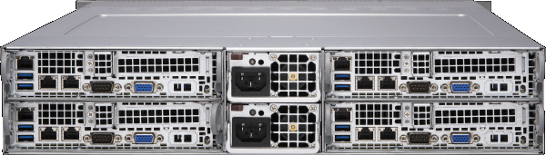 • Four hot-pluggable systems (nodes) in a 2U form factor. Each node supports the following: