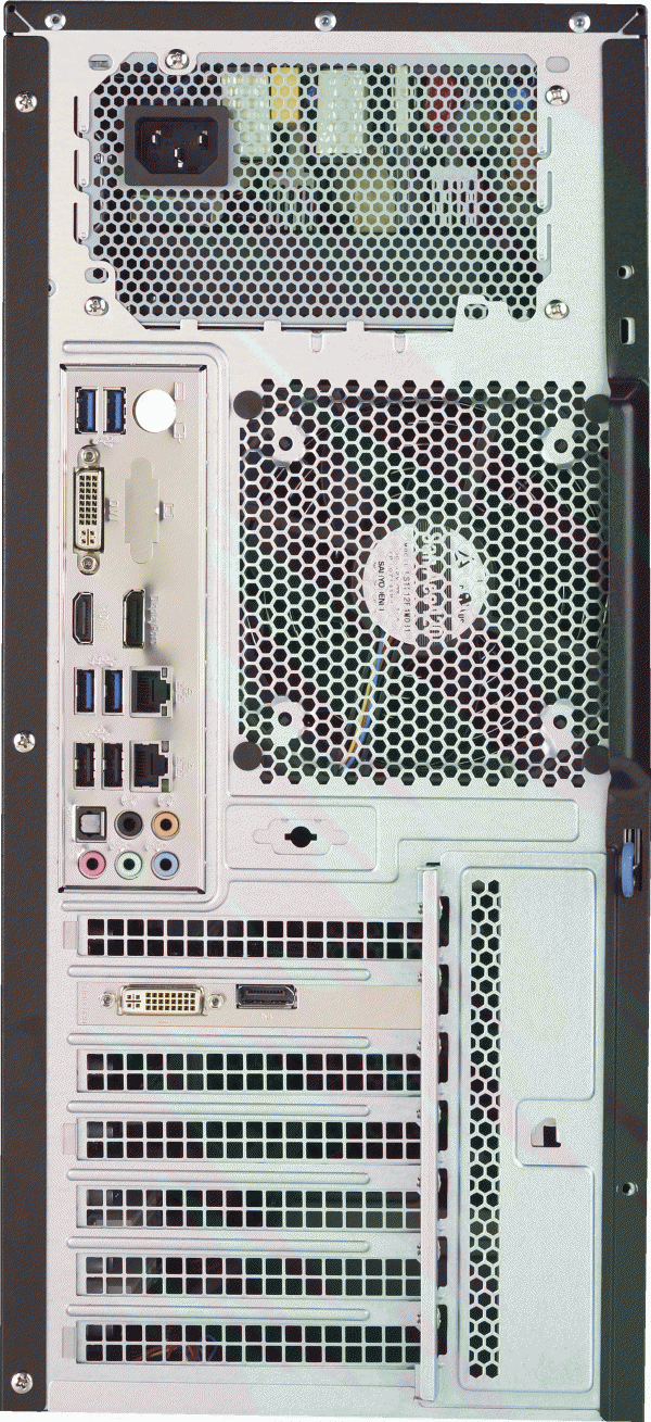 LAN, 2 USB 3.0 + 2 USB 2.0 (front)